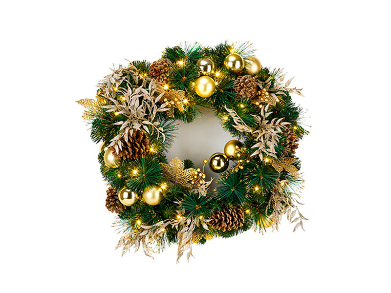 Add a touch of warmth with this 60 cm garland adorned with golden decorations and 50 built-in LED lights. It’s battery-powered for versatile placement and includes a hook for easy mounting on glass.