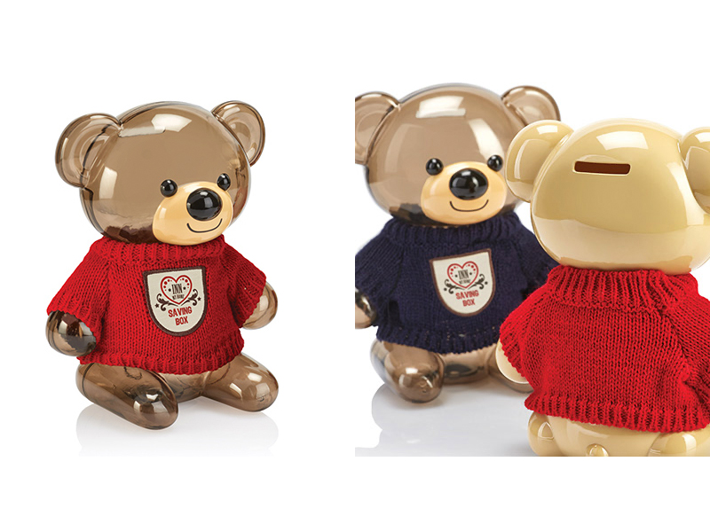 Give the gift of savings with this adorable teddy bear money box. Dressed in its very own custom sweater, this little bear is ready to help someone save up for their next big adventure. It comes in a beautiful gift box, ready to delight a loved one.