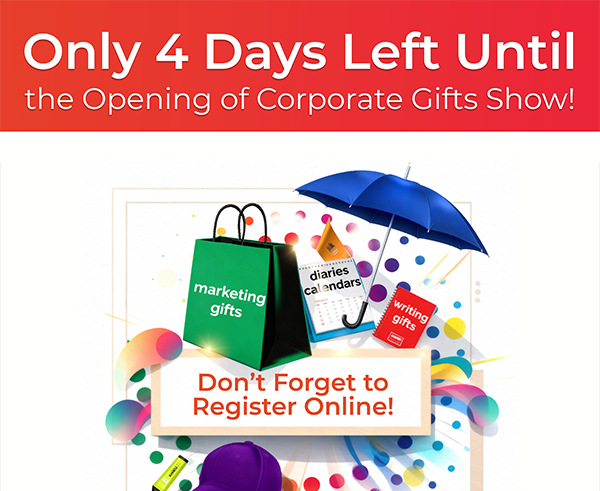 Only 4 Days Left Until the Opening of Corporate Gifts Show! Don’t Forget to Register Online!