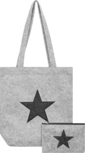 Geantă din pâslă STAR DUST GO – închidere cu scai, 2 mânere lungi, stea cusută pe față, aprox. 30 × 8,5 × 41 cm.