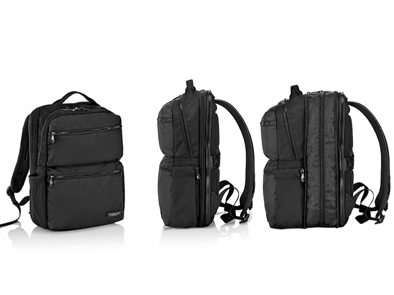 Oferă trei compartimente, inclusiv unul central extensibil cu 6 cm și deschidere la 180° pentru împachetare ușoară. Compartimentul posterior căptușit poate găzdui în siguranță un laptop de până la 15,6″.