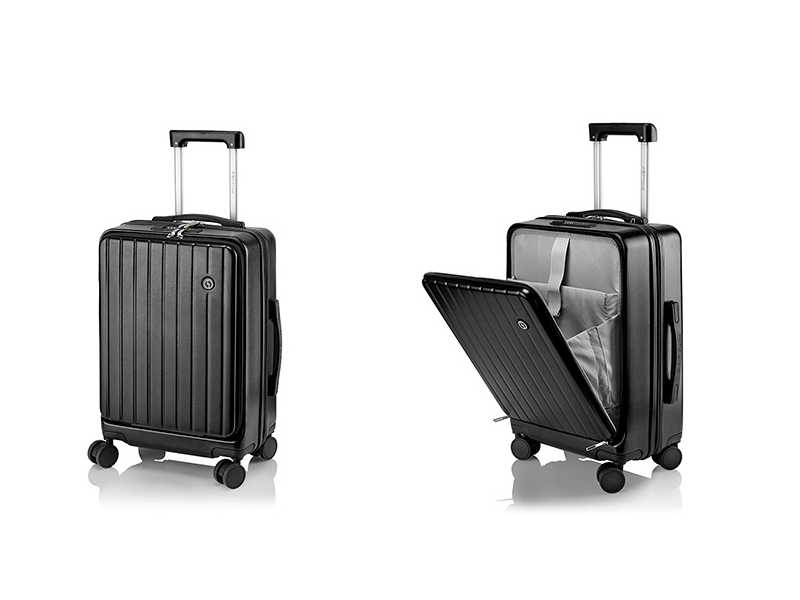 Călătoriți inteligent cu acest troler de business de 20″. Realizat din ABS și policarbonat rezistent, are buzunar frontal pentru laptop cu finisaj tip piele, patru roți duble silențioase și sistem de blocare TSA. Este dotat cu multiple funcții utile: compartiment pentru laptop cu acces rapid, port de încărcare USB-C integrat și suport pentru telefon în mânerul telescopic. Dispune și de cârlige pentru sacoșe de cumpărături și suport telescopic pentru sticlă, pe spate.